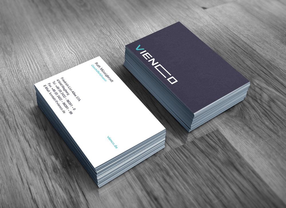 Hierfür wurde zum einen der obere und untere Arm des Buchstabens »C« im Firmennamen verlängert, was für die dynamischen Arbeitsprozesse steht. Dazu wurde als Key Visual ein Möbius-Band entwickelt. Diese aus der Physik und Mathematik bekannte Figur spiegelt die nicht-lineare Denkweise von VIENCO wider.